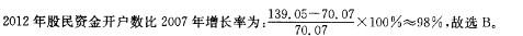 问题 到2012年末,股民资金开户数比2007年末增长了大约( )。 A. 90% B. 98% C. 100% D. 101%