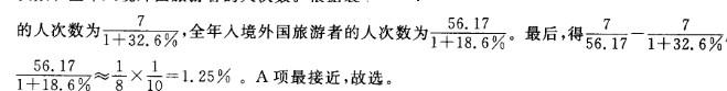 解析 要计算出本题的最终结果,需先计算出2011年月12月份该省外国旅游者的人次数和全年入境外国旅游者的人次数。根据表1数据,可知,2011年12月份,该省的外国旅游者