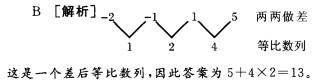 -2, -1,1,5,( )。A. 12 B. 13 C. 14 D. 15
