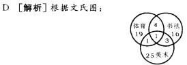 解析 可得三个兴趣小组的总人数为25 + 24 + 30-(5 + 2 + 4) + 1 = 69(人)。所以答案选D。
