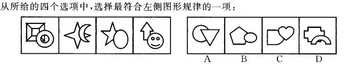 解析 题干中的图形都包括一个只由直线构成的图形和一个只由曲线构成的图 形,并且曲线图形在直线图形的上方。D项上面的图形中还包括直线,要排除,本题选B。