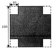问题 如图,一块边长为180厘米的正方形铁片,四角各被截去了 一个边长为40厘米的小正方形,现在要从剩下的铁片中剪 出一块完整的正方形铁片来,剪出的正方形面积最大为 ( )平方厘米。 A. 16000 B. 16500 C. 18000 D. 18600