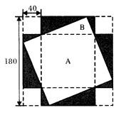 解析 如下图剪裁,所得正方形的面积等于正方形A的面积与4个三角形B的面积之和。 SA=(180-40×2)2 = 10000(平方厘米),SB= (180-40×2)×40÷2 = 2000(平方厘米), 所求面积为SA+4SB = 18000(平方厘米)。