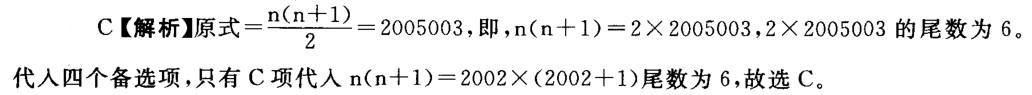 问题 1 + 2 + 3 + 4+…+n=2005003,则自然数n=( )。 A.2000 B.2001 C. 2002 D. 2003
