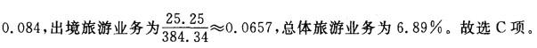解析 2009年国内旅游业务收入毛利率为≈0.067,入境旅游业务为