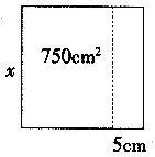 问题 从一块正方形木板上锯下宽5cm的一个木条后。剩下的长方形面积是750cmz.锯下的木条面积是多少平方厘米?() A.25 B.150 C.152 D.168