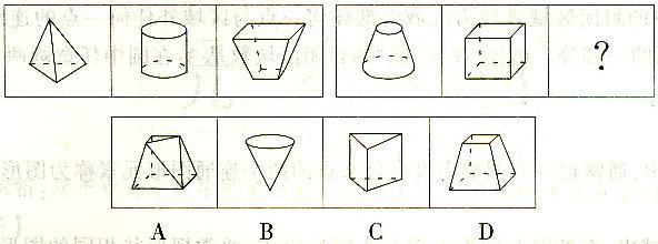 解析 第一组图中的重心分别在下、中、上部;第二组也符合这一规律,选项中只有B项的重心在上部,答案为B。