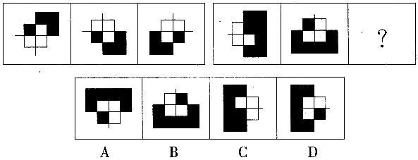 解析 外部阴影顺时针旋转90°,方块内的阴影逆时针移动一格,得到后面的图形。选择C。