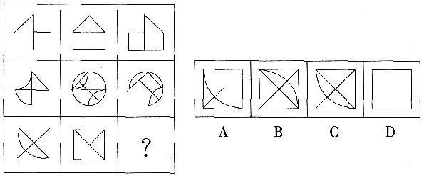 问题 下题中缺少一个图.请从下边选项中选择一个插入上边图形中以使上边的图形逻辑角度上能成双配对。 () A.选项A B.选项B C.选项C D.选项D