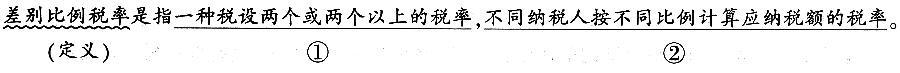 解析 首先分析差别比例税率的定义: 对选项进行分析,A、B项不符合①,C项不符合②。只有D项符合定义,故答案选D。