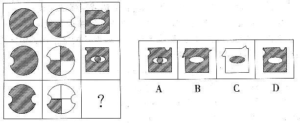 解析 每列前两个图形叠加,内部去异存同并保留外延豁口得到第三个图形。