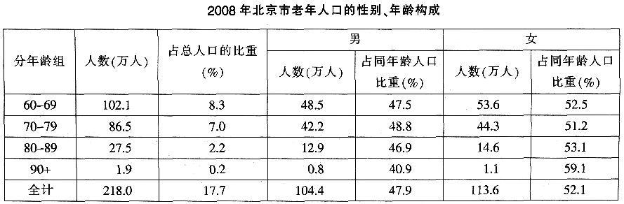 根据以下资料,回答61~65题。注:90+表示90岁及以上注:2006年北京市总人口数为1197.6万人,2007年为1213.3万人,2...