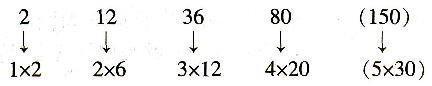解析 第一个乘数1,2,3,4,(5)为自然数列, 第二个乘数2,6,12,20,(30)后一项减前一项得4,6,8,(10)。