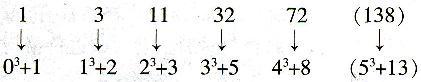 解析 立方数列变式。 其中第一个加数是连续自然数的立方,第二个加数是和数列。