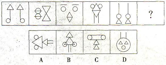 解析 题干图形均由大小相同的两个三角形、两条直线以及两个圆组成.选项中只有C符合。