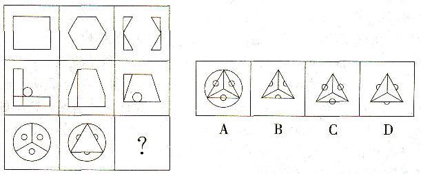 图形推理。请按每道题的答题要求作答。从所给的四个选项中,选择最合适的一个填入问号处,使之呈现一定的规律性。()A.选项AB.选项BC....