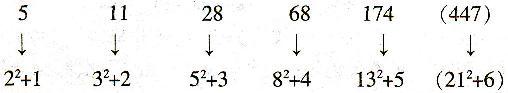 问题 数字推理。给你一个数列,但其中缺少一项,要求你仔细观察数列的排列规律.然后从四个供选择的选项中选择你认为最合理的一项,来填补空缺项,使之符合原数列的排列规律。 5,11,28,68,174,() A.235 B.339 C.447 D.641