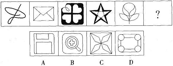 问题 图形推理。请按每道题的答题要求作答。 从所给的四个选项中.选择最合适的一个填入问号处,使之呈现一定的规律性。() A.选项A B.选项B C.选项C D.选项D