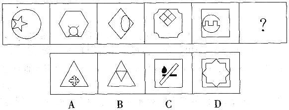 问题 图形推理。请按每道题的答题要求作答。 从所给的四个选项中.选择最合适的一个填入问号处,使之呈现一定的规律性。() A.选项A B.选项B C.选项C D.选项D