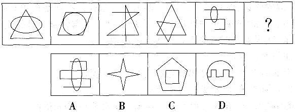 解析 题干图形中的直线数依次为3、4、5、6、7、(8),选项中只有B的直线数为8。