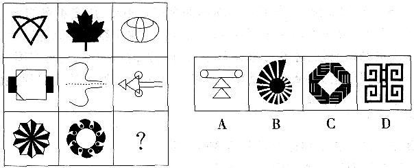 问题 图形推理。请按每道题的答题要求作答。 从所给的四个选项中,选择最合适的一个填入问号处,使之呈现一定的规律性。() A.选项A B.选项B C.选项C D.选项D