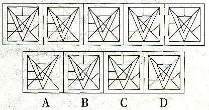 解析 将题干第一个图形看成一个完整的图形。后面的图形与之相比.内部都只缺少一条直线。