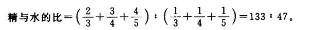 解析 设瓶子容积为1,因为酒精与水的比分别是2:1,3:1,4:1。所以,三瓶酒精溶液混和后,酒