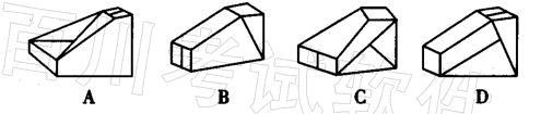 解析 由图形中间的长方形,可知A、C是错误的,排除。D项侧面的图形与原图不符合,排除,故选B。