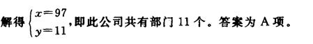 解析 本题可列方程式进行解答。设公司共有人员x人,部门y个,