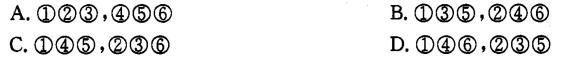 问题 把下面的六个图形分为两类,使每一类图形都有各自的共同特征或规律,分类正确的一项是()