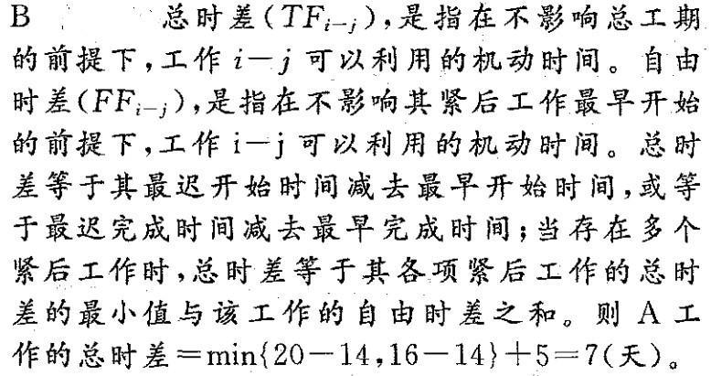 问题 已知工作A的紧后工作是B和C,B工作的最迟开始时间为第20天,最早开始时间为第 14天,C工作的最迟完成时间为第16天,最早完成时间为第14天。A工作的自由时差为 5天,则A工作的总时差为( )天。