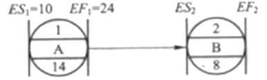 单代号网络计划工作A最早开始时间(ES1)、最早完成时间(EF1)和工作持续时间如右图所示,则工作B的最早开始时间(ES2)和最早完成时间(EF2)分别为...