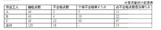 根据下表提供的数据表可知,主要是(  )焊接质量影响了总体质量的水平。 A、作业工人A B、作业工人B C、作业工人C D、全体作业工人