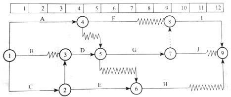 某双代号时标网络图如下图所示,下列选项中正确的有( )。 A、工作A总时差为2天 B、工作F最迟完成时间为第9天 C、工作E的自由时差为2天...