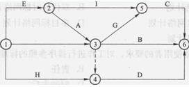 已知下列双代号网络图,通过工作间的逻辑关系分析可知,工作A的紧后工作有( )。 A、工作I B、工作B C、工作C D、工作D E、工作G