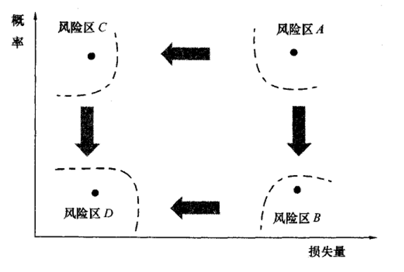 在事件风险量的区域图中,若某事件经过风险评估,处于风险区A,则应采取措施降低其概率,可使它移位至(  )。A、风险区B B、风险区C C、风险区D...