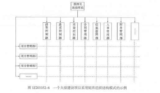 解析 2018版教材P20 在矩阵组织结构中,每一项纵向和横向交汇的工作(如图1Z201032-6所示的项目管理部涉及的投资问题),指令来自于纵向和横向两个工作部门,因此其指令源为两个