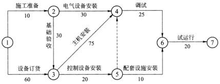 问题 一、背景 某安装公司承包某制药厂生产设备工程的施工,该制药厂生产设备的主机及控制设备由建设单位从国外订货。制药厂生产设备的主机设备土建工程及机电配套工程由某建筑公司承建,已基本完工。安装公司进场后,按合同工期要求,与建设单位和制药厂生产设备主机及控制设备供应商洽谈,明确了设备主机及控制设备到达施工现场需6 0天。安装公司依据工程的实际情况编制了该制药厂生产设备工程的施工进度计划(双代号网络图),其中该制药厂生产设备工程的安装工作内容、逻辑关系及工作持续时间见下表。 在主机设备基础检验时,安装公司发现主机设备的基础与安装施工图不符,主机设备基础验收不合格,建筑公司进行了整改,重新浇捣了混凝土基础,经检验合格,使基础检验的工作时间用了40天。制药厂生产设备工程在施工时,因主机设备及控制设备在运输过程中,受到台风的影响,使该主机设备及控制设备到达安装现场比施工进度计划晚了1 0天。安装公司按照建设单位的要求,增加劳动力,改变施工方法,调整进度计划,使制药生产设备仍按合同规定的工期完成。 二、问题 1.绘出安装公司编制的制药厂生产设备工程施工进度计划(双代号网络图)。 2.分析影响工期的关键工作是哪几个?总工期需多少天? 3.基础检验工作增加到40天会不会影响总工期? 4.主机设备及控制设备晚到1 0天是否影响总工期?说明理由。 5.工程按合同工期完成,安装公司应在哪几个工作进行赶工?
