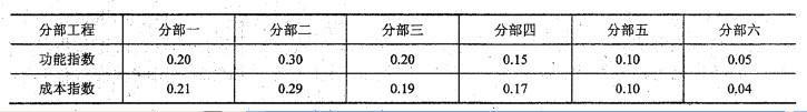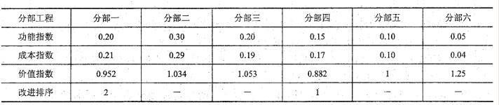问题 某工程由六个分部工程组成,釆用价值工程分析得到各分部工程功能指数和成本指数如 下表所示,则首先应进行价值工程改进的是( )。