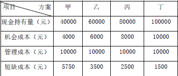 某施工企业有四种现金持有方案,它们各自的机会成本、管理成本和短缺成本如下表所示,则该企业的最佳现金持有量为()。A.40000B.60000C...