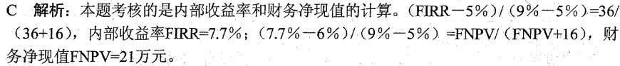 某项目财务净现值FNPV与收益率i之间的关系如下图所示。若基准收益率为6%,该项目 的内部收益率和财务净现值分别是( )。A. 3.0%; 21 万元...
