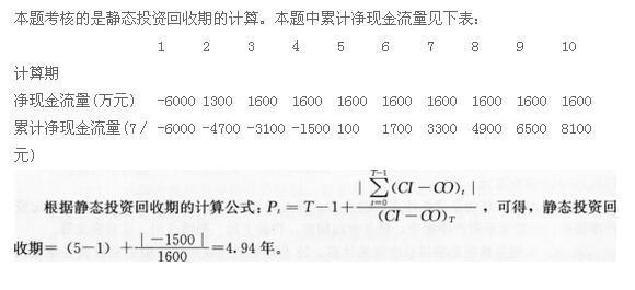 解析 本题考核的是静态投资回收期的计算。本题中累计净现金流量见下表: