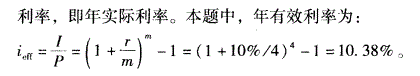 问题 已知年名义利率为10%,每季度计息1次,复利计息。则年有效利率为( )。