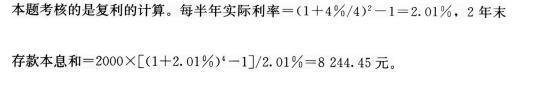 假设小王每半年末存款2000元,年利率为4%,每季复利计息一次,则小王2年末存款本息和为( )元。A.8492.93B、8244.45C、8243...
