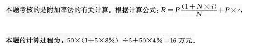 问题 某出租设备价格50万元,租期为5年,折现率8%,附加率4%,采用附加率法计算租金时,则每年租金不能低于( )万元。