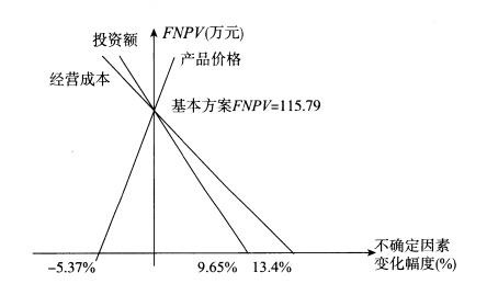 根据下面的单因素敏感性分析图,投资额、产品价格、经营成本三个不确定性因素对方案的影响程度由高到低依次为(  )。 A.产品价格→投资额→经营成本 ...