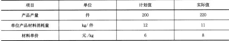 解析 A.(200-220)*12*6 =-1440(先替换产品产量但增减方向错误) B.(200-220)*11*6 =-1320(先替换单位产品材料消耗量,顺序错误) C.(220-200)*12*6 = 1440(先将产品产量计划数替换为实际数) D.(220-200)*12*8 = 1920(先替换材料单价,顺序错误) 故正确选项为C。