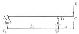 如图所示伸臂梁,A点支座固定,B点处支座由B点水平平移至C点,则以下描述中正确的是( )。A、 A点处竖向支座反力Y1逐渐减小至零B、 支座反...