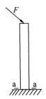 解析 此题有一定专业性,对工程及相关专业考生来说,但比较简单。主要考核建筑结构体系中构件受力状态分析的知识点。先审题,图中杆件与地面为固定连接,当施加如图所示方向的力F时,可将力F分解为竖直向下和水平向右的两个分力。首先可以明确a-a截面处受压力和剪力;另外,因为是固定连接,那么a-a截面处肯定承受弯矩。故本题的正确项为“D.压力、剪力和弯矩”.
