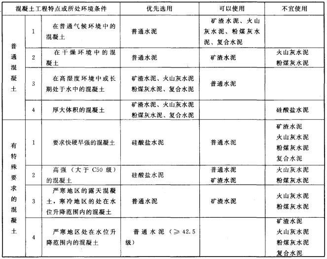 解析 在混凝土工程中,根据使用场合、条件的不同,可选择不同种类的水泥,具体可参考下表。 常用水泥的选用